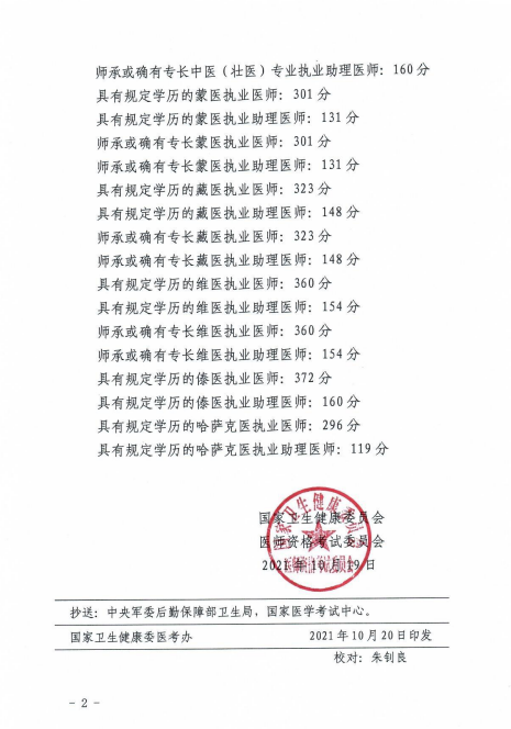 关于2021年中医类别民族医专业医师资格考试医学综合考试合格分数线的通知 文章来源:https://www.xsbn.gov.cn/wjw/57973.news.detail.dhtml?news_id=2829221