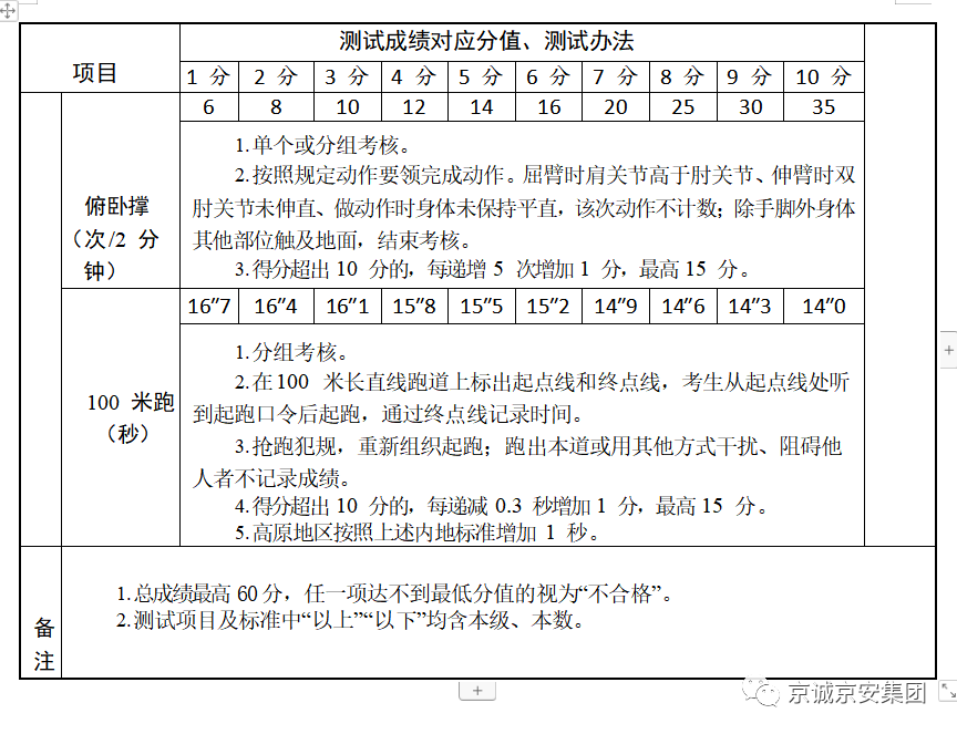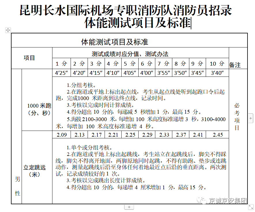 5.飞机监护守护辅助员招录考试为面试;消防战斗辅助员招录考试分为面试、体能测试,总成绩(100分)=面试(40分)+体能测试(60分),总成绩低于70分不予录用。