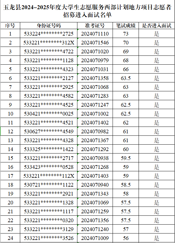 附件:玉龙县2024—2025年度大学生志愿服务西部计划地方项目招募进入面试名单