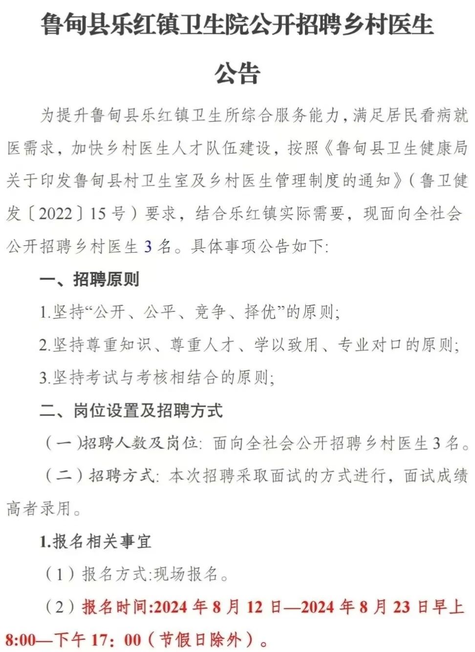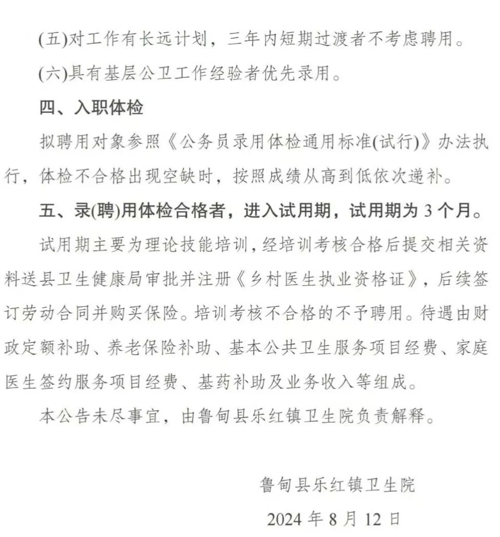 2024年昭通市鲁甸县乐红镇卫生院招聘乡村医生公告