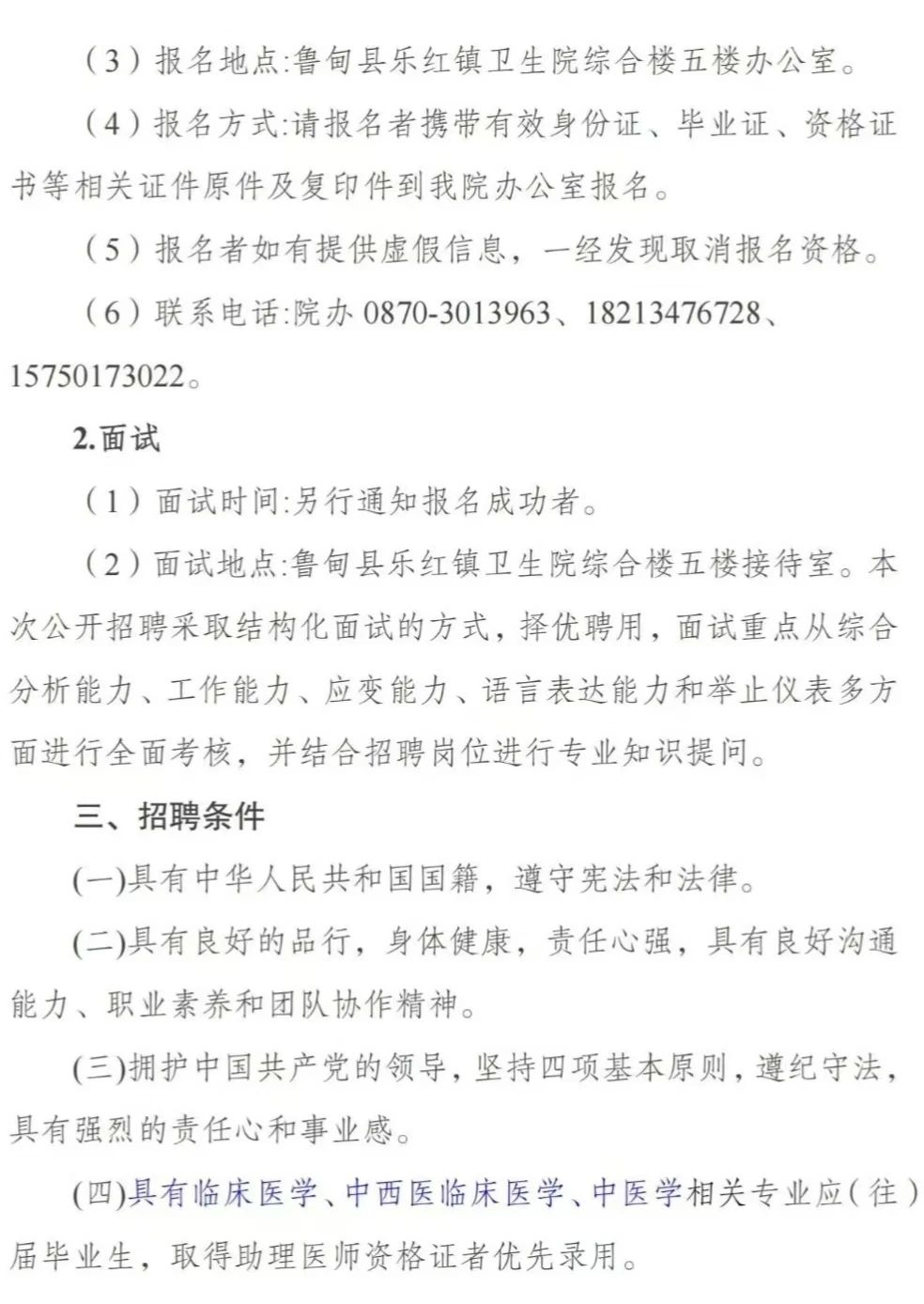 鲁甸县乐红镇卫生院公开招聘乡村医生公告