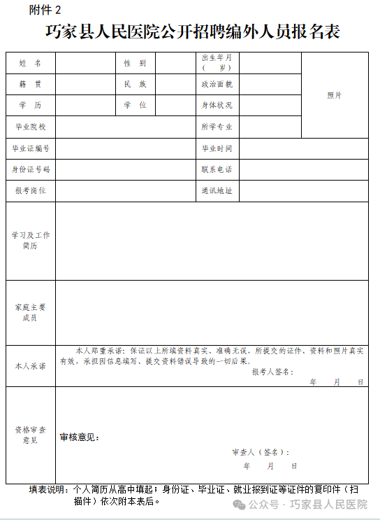 3、巧家县人民医院2024年下半年公开招聘编外人员报考承诺书