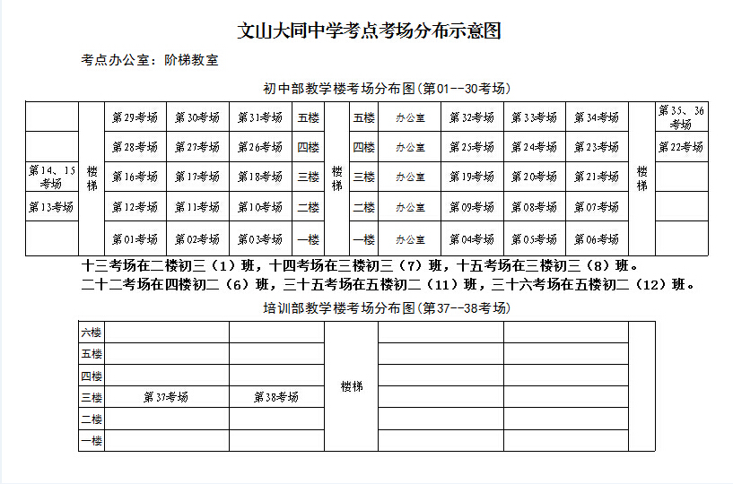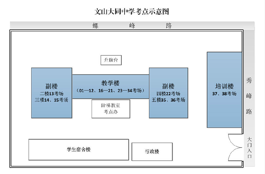 文山大同中学2015年公务员考点考场分布示意图