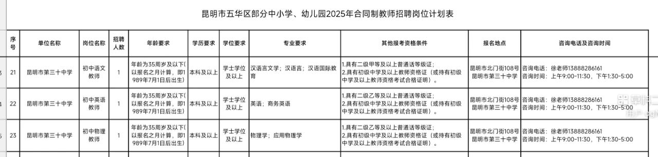 云南省昆明市第三十中学(南菁学校)2025年7月公开招聘优秀教师公告