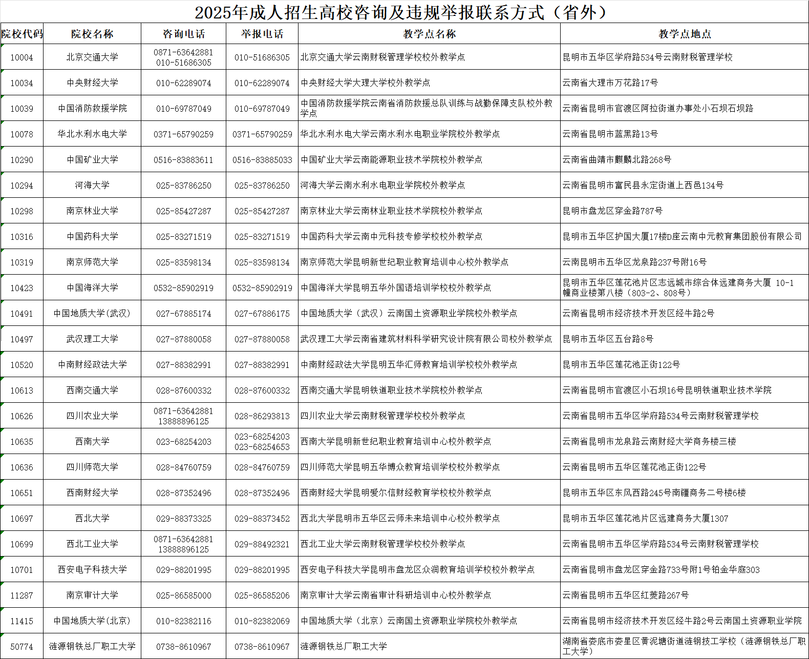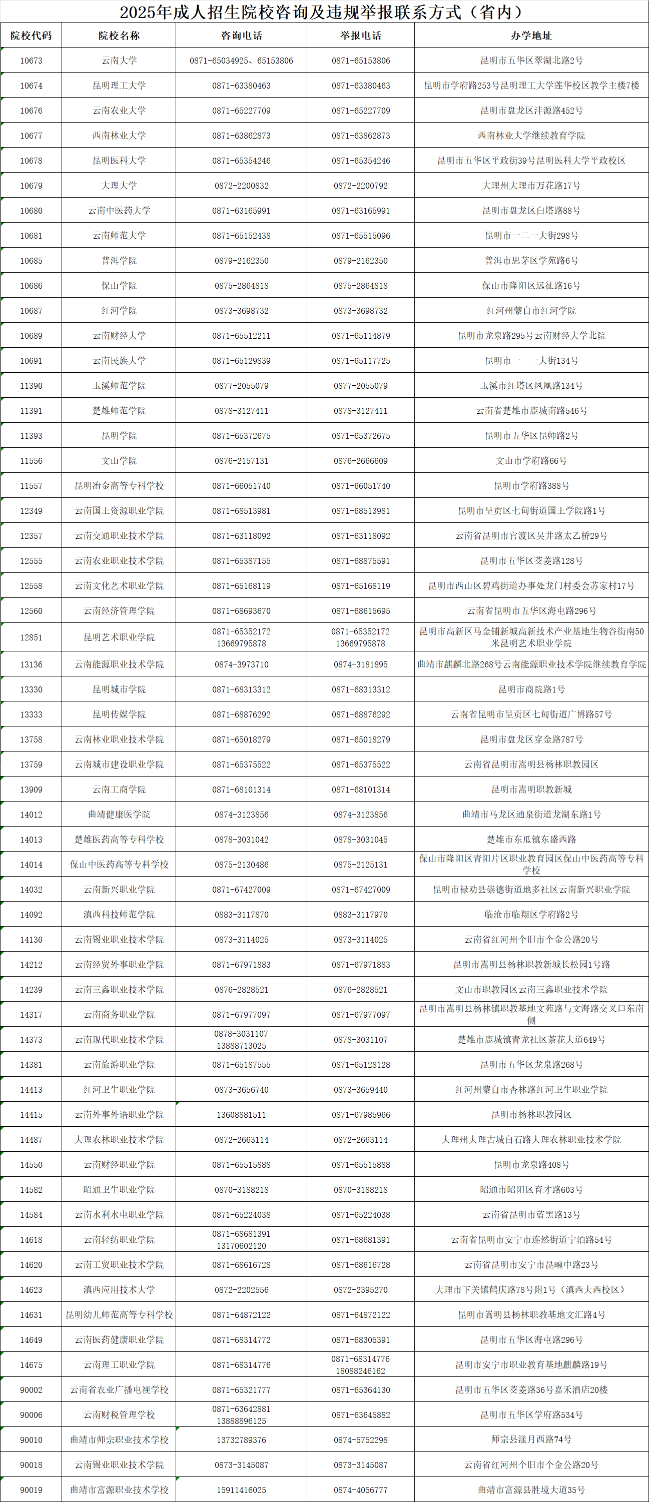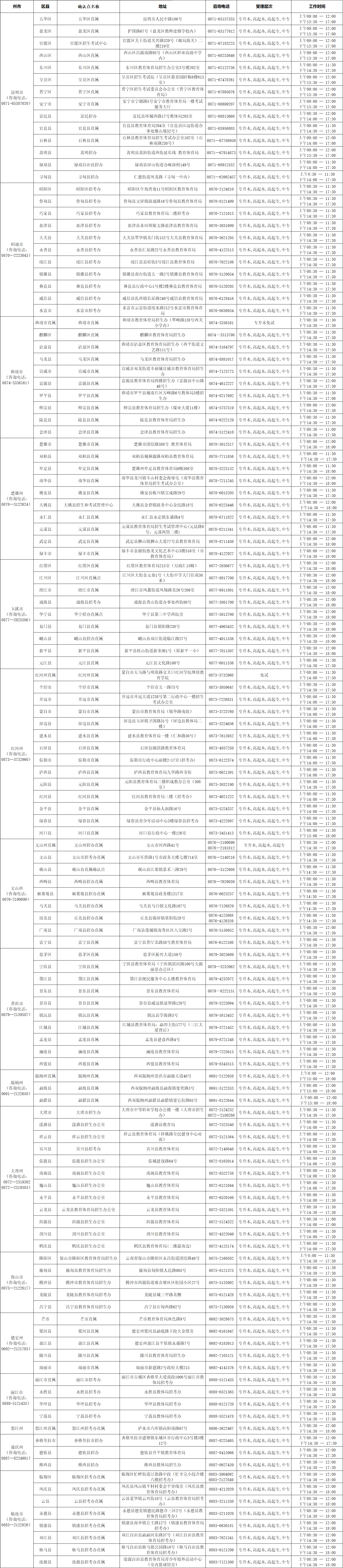 1.2025年云南省成人高考报名点及联系电话