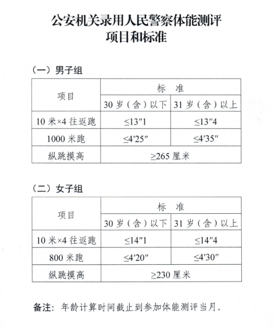 体能测评参照《公安机关录用人民警察体能测评项目和标准》规定执行。