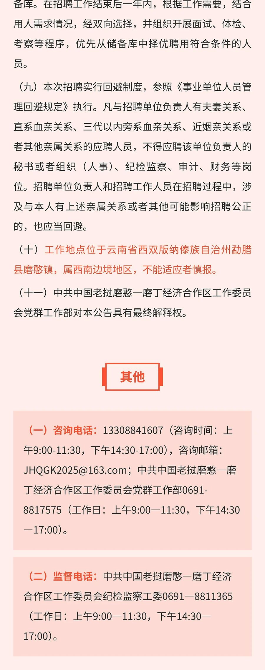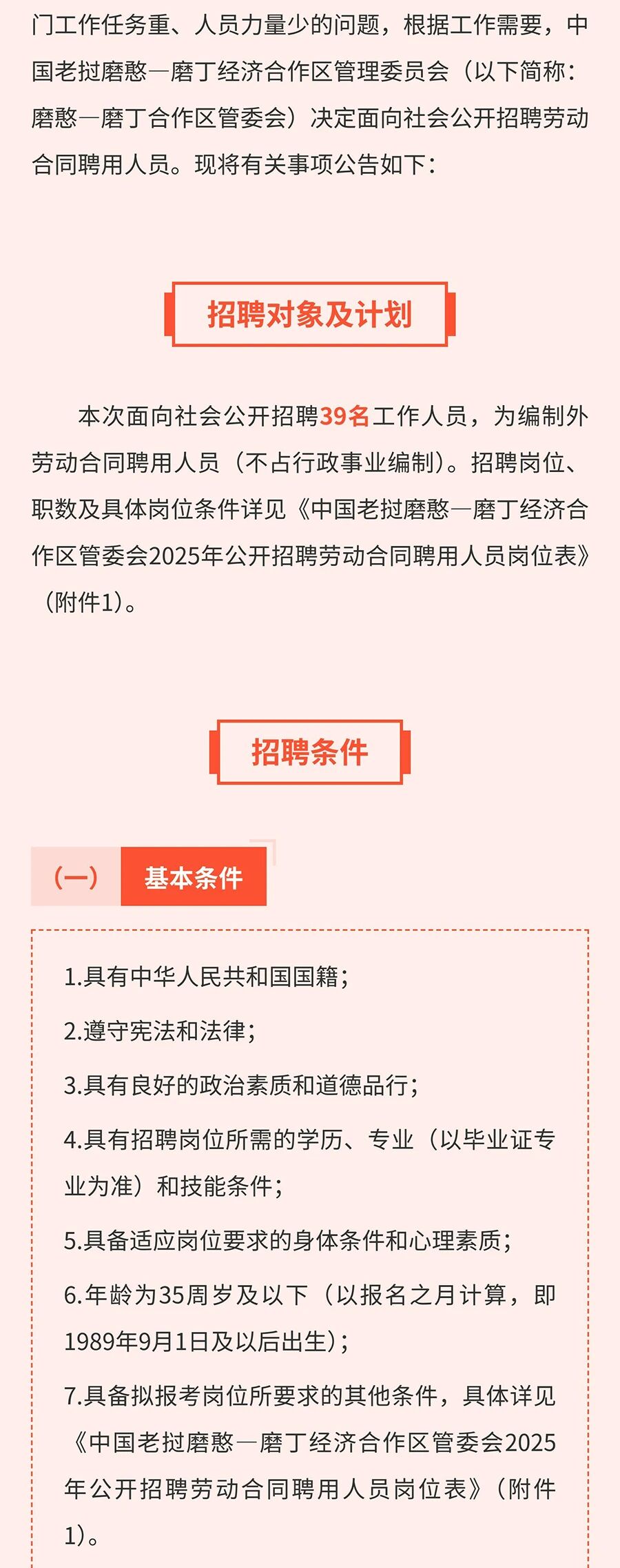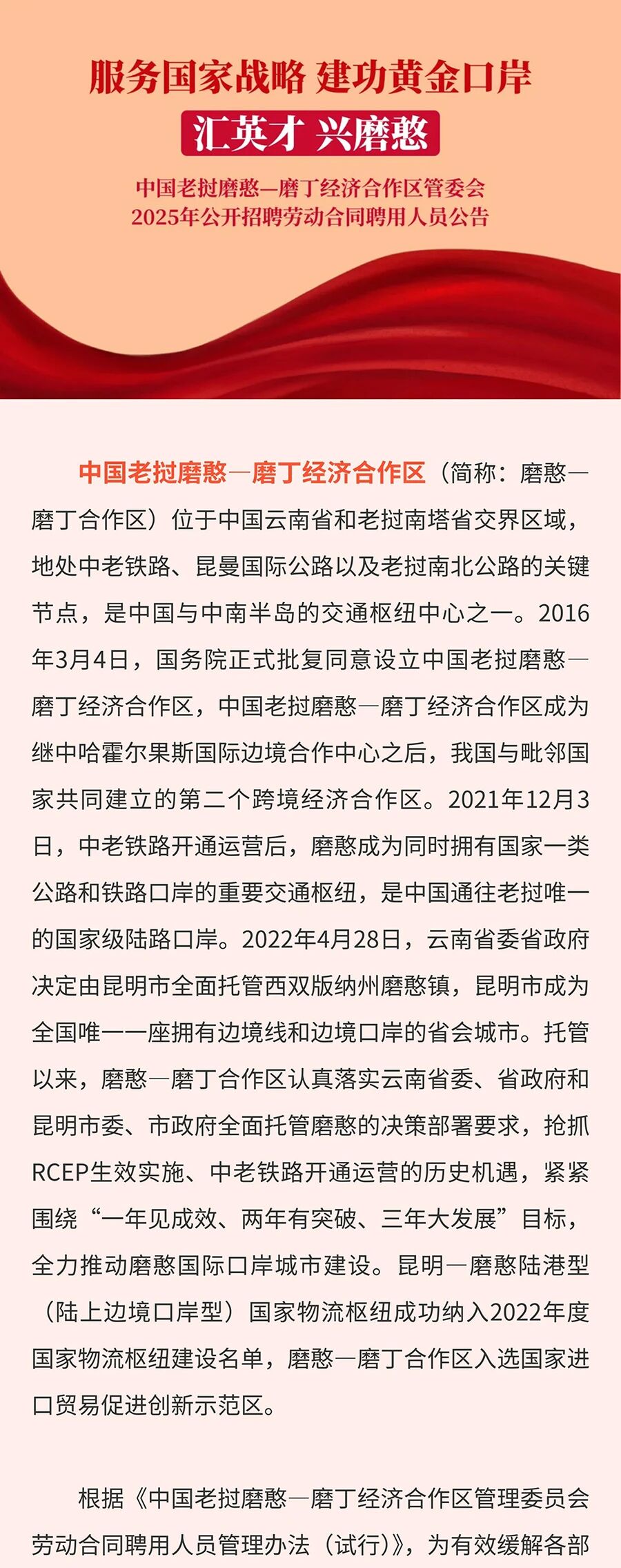 附件1:《中国老挝磨憨—磨丁经济合作区管委会2025年公开招聘劳动合同聘用人员岗位表》