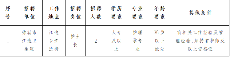 弥勒市紧密型市域医共体江边分院公开招聘合同制护士公告