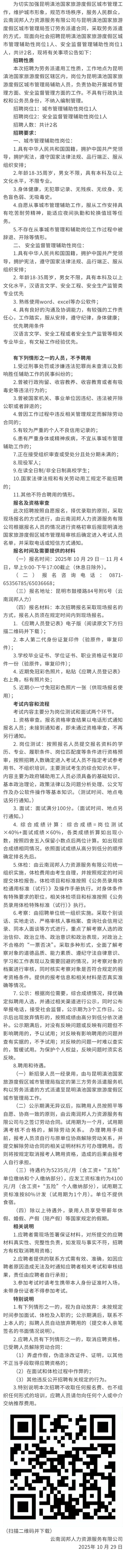 2025年昆明滇池国家旅游度假区城市管理局招聘城市管理局辅助人员公告