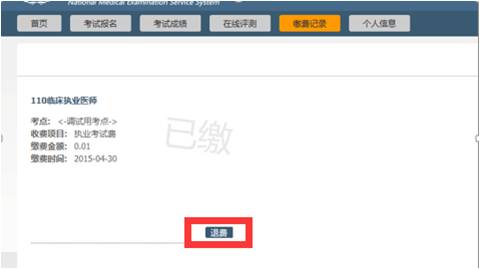 凡参加2015年医师资格考试网上报名并已网上缴费的考生,因资格审核不通过现在可以进行退费了。具体操作如下: