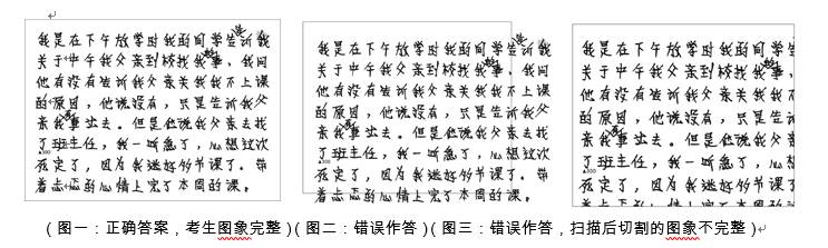 (图一:正确答案,考生图象完整)(图二:错误作答)(图三:错误作答,扫描后切割的图象不完整)