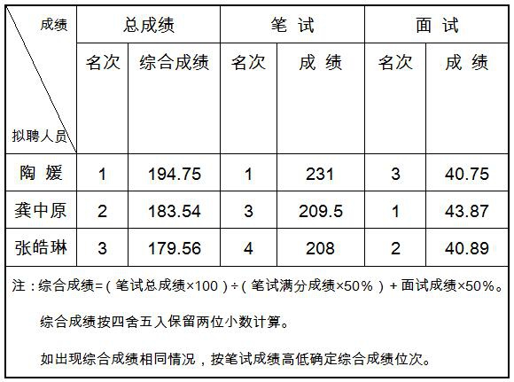 公开招聘工作人员拟聘用人员公示
