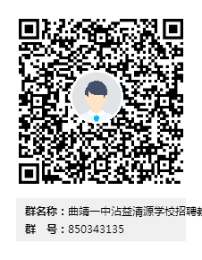 简历请投递至曲靖一中组织人事科邮箱:1003725741@qq.com(简历中附上学习成绩单或工作业绩,截止日期:2019年4月7日),同时扫码入群,下载报名表。